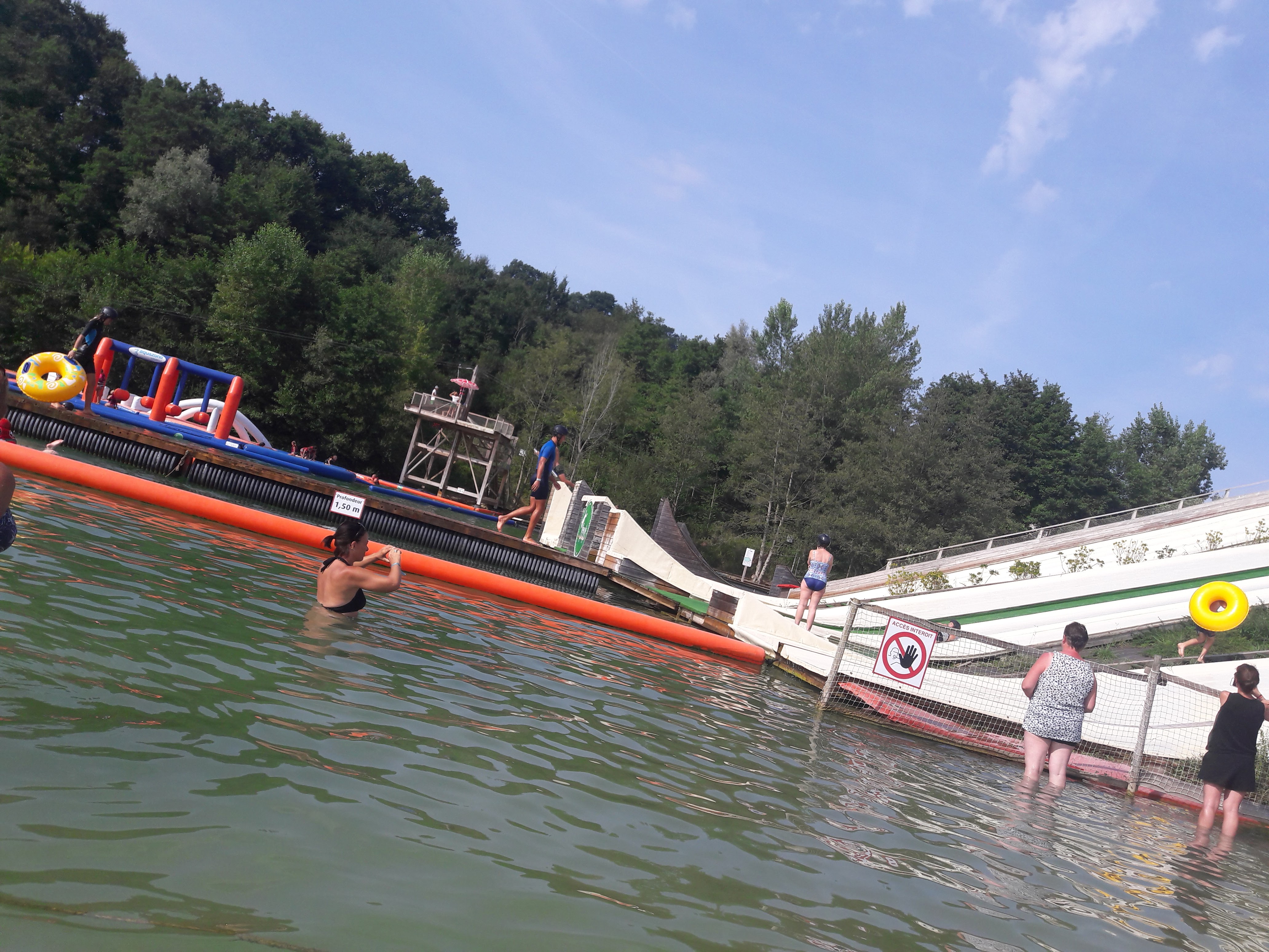Dimanche de septembre bien chaud et donc agréable dans une eau assez chaude pour qu'on y passe du temps. Nous avons fait 1h du parcours gonflable et avons bien apprécié. A faire accompagné pour de bons moments de rire et de sensation sans risque (sauf quelques plats depuis la tour...)