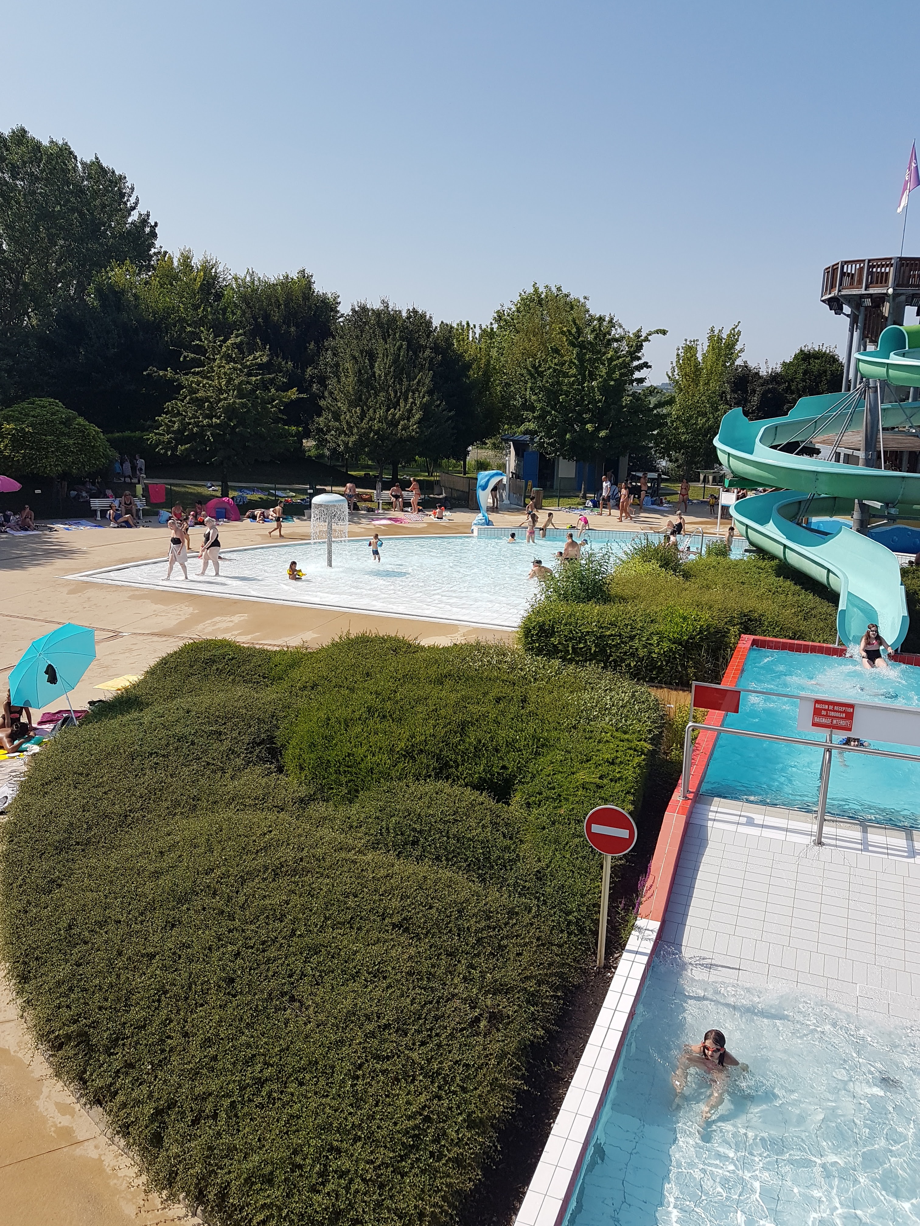 Superbe piscine tobbagan plusieurs bassins coin pour pic nic spacieux et propre snack pas cher ceux ki ne souhaitent pa être en maillots de bains peuvent passer directement sur l'air pic nic le prix de l entrée et pas cher c'est une très belle piscine