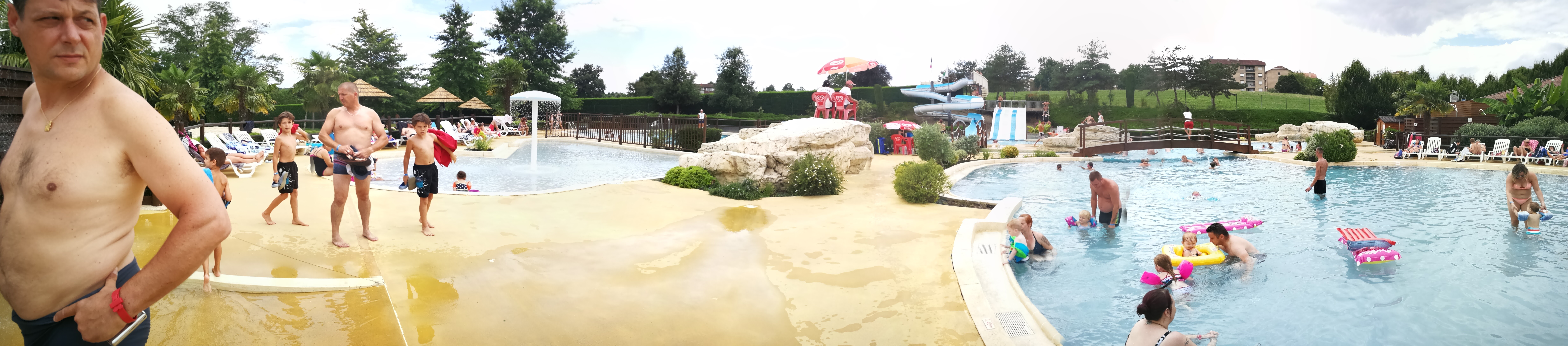 Piscine très bien pour des ado avec les toboggans et différents bain .par contre pour les jeunes enfants il n y a pas rien pour eux le champignon cascade est limité . Sinon la partie detente avec les parasols est génial ..les jeunes peuvent jouer au volley et les plus petits ont un petit train et les jeux balançoire toboggans pour se divertir.